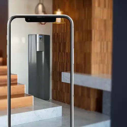 Sekojat saitei un noklikšķiniet uz AR (paplašinātā realitāte), lai viedtālrunī virtuāli novietotu siltumsūkni telpā: