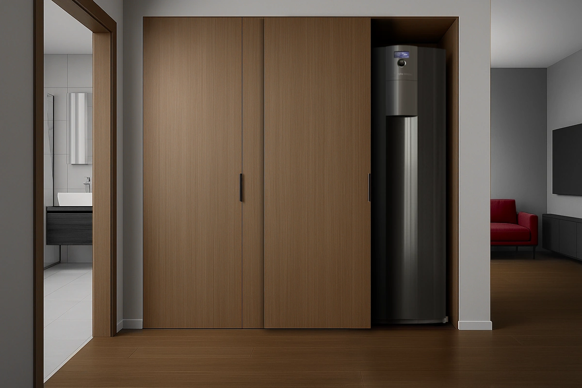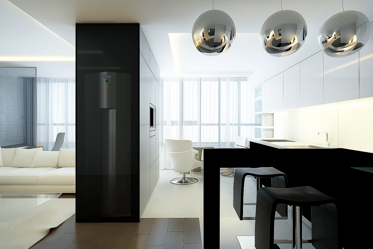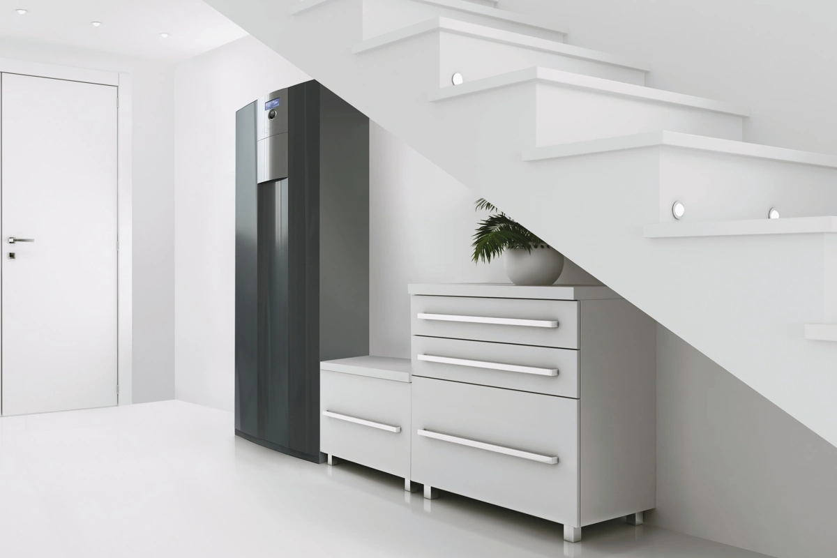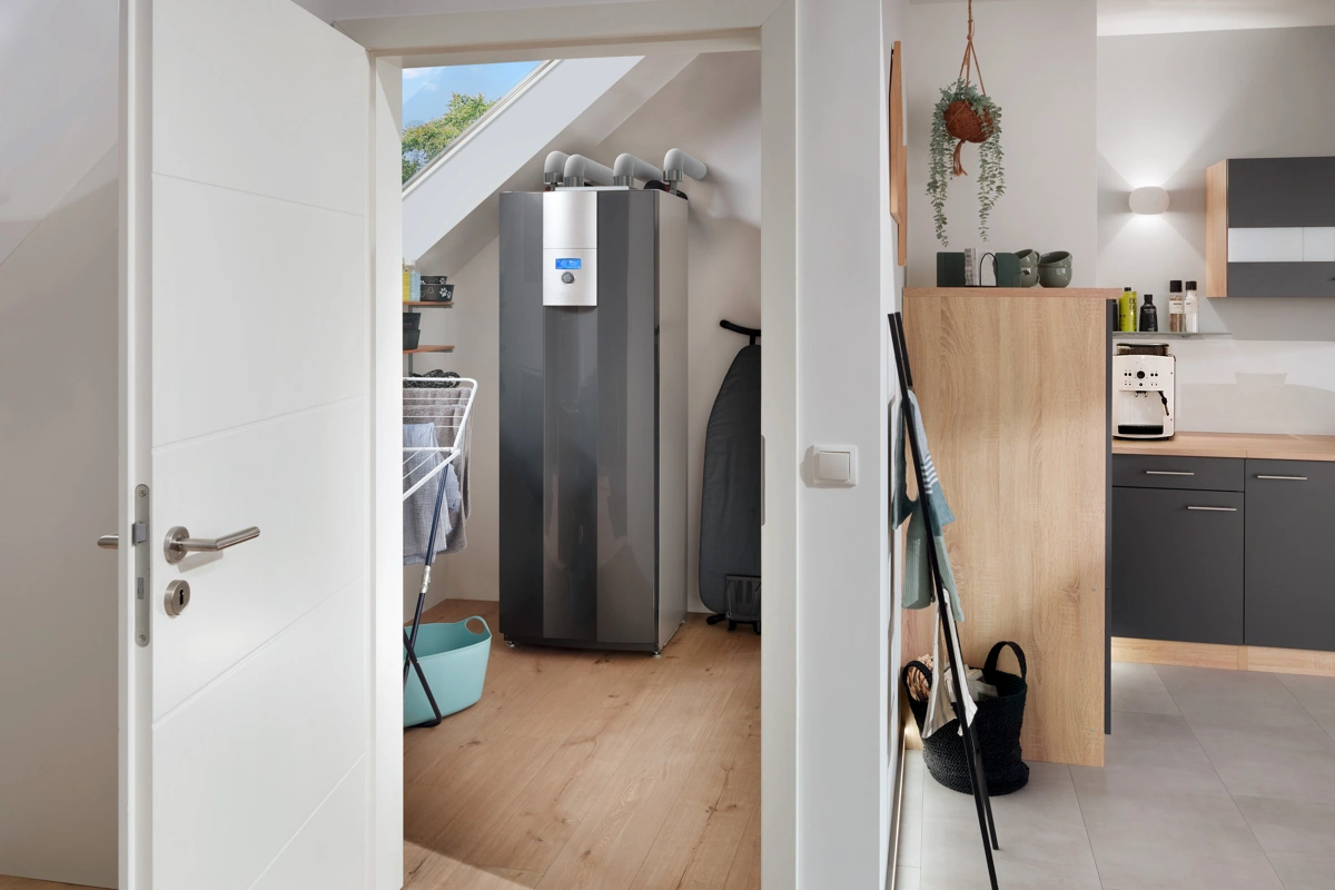 Aizņem tik daudz vietas kā parasts ledusskapis, bet tajā ietilpst viss, kas nepieciešams jūsu mājai: efektīva apkure, pasīvā dzesēšana un pietiekams karstā ūdens daudzums.